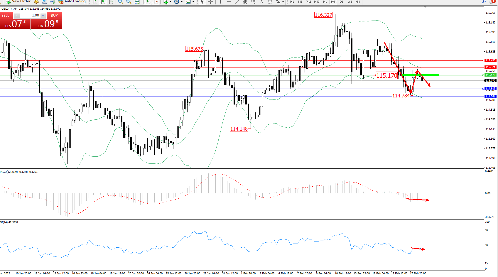 交易策略:115.170下方看跌,目标114.913、114.761