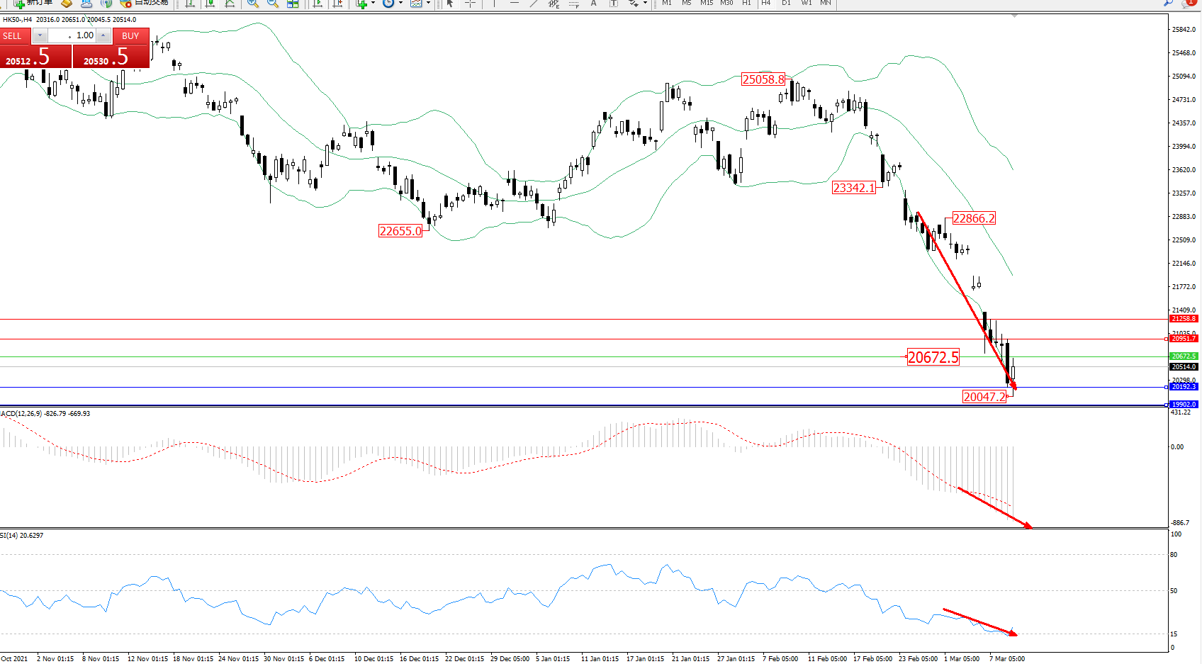 技术点评:空头动力延续布林带指标下轨附近持续下挫,低位抵达20047位置后短暂快速回升,多头动力伺机入场,但整体下行态势良好,布林带指标呈向下移动趋势持续中,MACD指标处于空头区域维持震荡持续下挫,RSI指标处于空头区域维持震荡下行至超卖区15均衡线附近徘徊中;