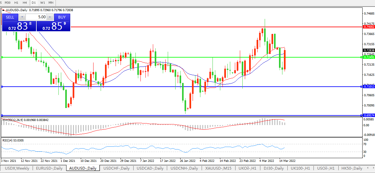 交易策略:0.7250上方看涨,目标0.7400、0.7550