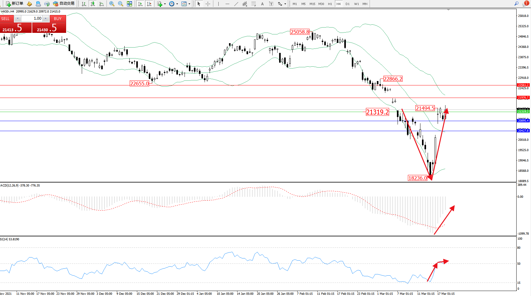 香港恒生指数3月18日(周五)收盘下跌88.83点,跌幅0.41%,报21412.4点;港股未能延续前2日的大反弹行情,恒指午后一度转涨,恒生科技指数跌1.92%,再度失守4500点。今日南下资金逆势净流入44.73亿港元,大市成交额为2366亿港元。大金融股与内房股午后拉升,助力大市跌幅收窄,据《香港经济日报》3月18日报道,香港特区行政长官林郑月娥在抗疫记者会公布,推出新一轮“保就业计划2022”。林郑月娥预告,保就业2022将可惠及110万至130万人,涉资260亿至310亿港元。林郑月娥表示,在下午将交代临时失业支援计划,涉资30亿港元,助30万名“短期失业人士”。