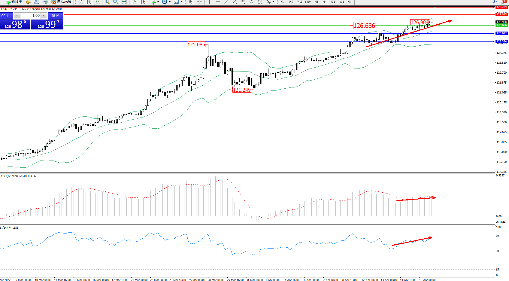 交易策略:126.686上方看涨,目标127.615128.209