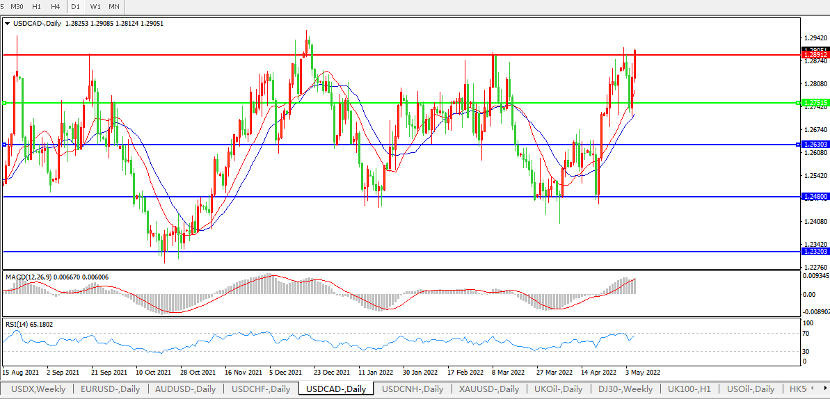 本周美元兑加元涨0.39%至1.2904,周一盘中触及1.2913,为去年12月22日以来最高;不过加拿大丰业银行经济学家表示,美元兑加元涨幅将在1.29水平上方受限。我们认为加元有一些相当明显的基本优势,比如加拿大央行收紧货币政策以及经济增长富有弹性,但这些因素继续被外部因素(股市波动)所掩盖,这可能会让美元暂时得到更好的支撑。我们确实认为,美加的涨幅仍将在1.29上方受限,这是过去10个月左右一直保持的区间顶部。