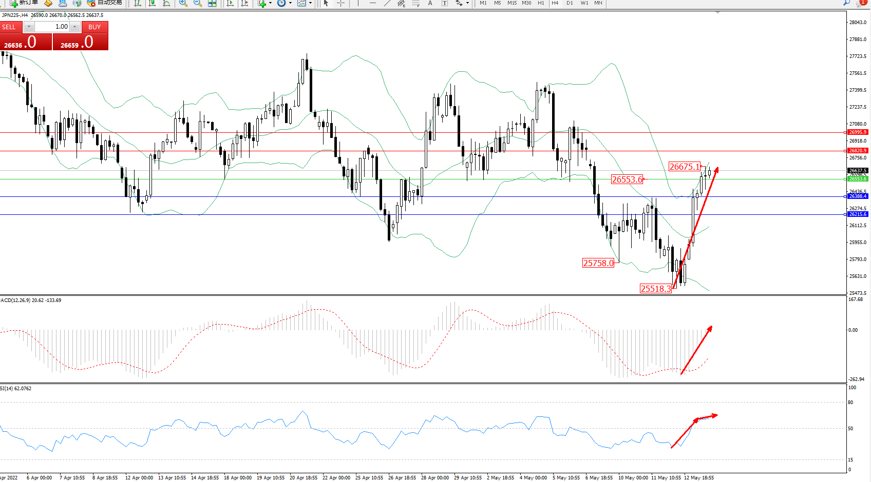 日经225指数5月13日(周五)收盘上涨621.28点,涨幅2.41%,报26370.00点。日本央行行长黑田东彦:日本经济将维持复苏趋势。我们没有看到日本中长期通胀预期有大幅上升的迹象。通胀预期的上升主要由能源成本驱动,缺乏可持续性。固定利率操作有助于稳定金融市场。我们将通过促进工资上涨推动家庭实际收入增加的循环,寻求可持续、稳定地实现2%的通胀率。新冠疫情继续对经济造成下行压力。经济不确定性在加剧。想强调一下我们和美国的物价形势是不同的。