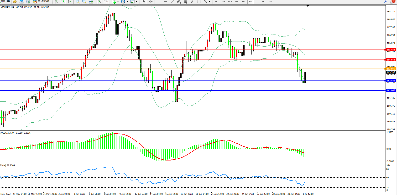 英镑兑日圆维持163.596附近震荡,通胀飙升和消费者信心低迷导致经济学家纷纷下调对英国今年剩余时间经济表现的预期,英国央行在5月份警告称,经济衰退可能会在今年年底之前席卷英国。