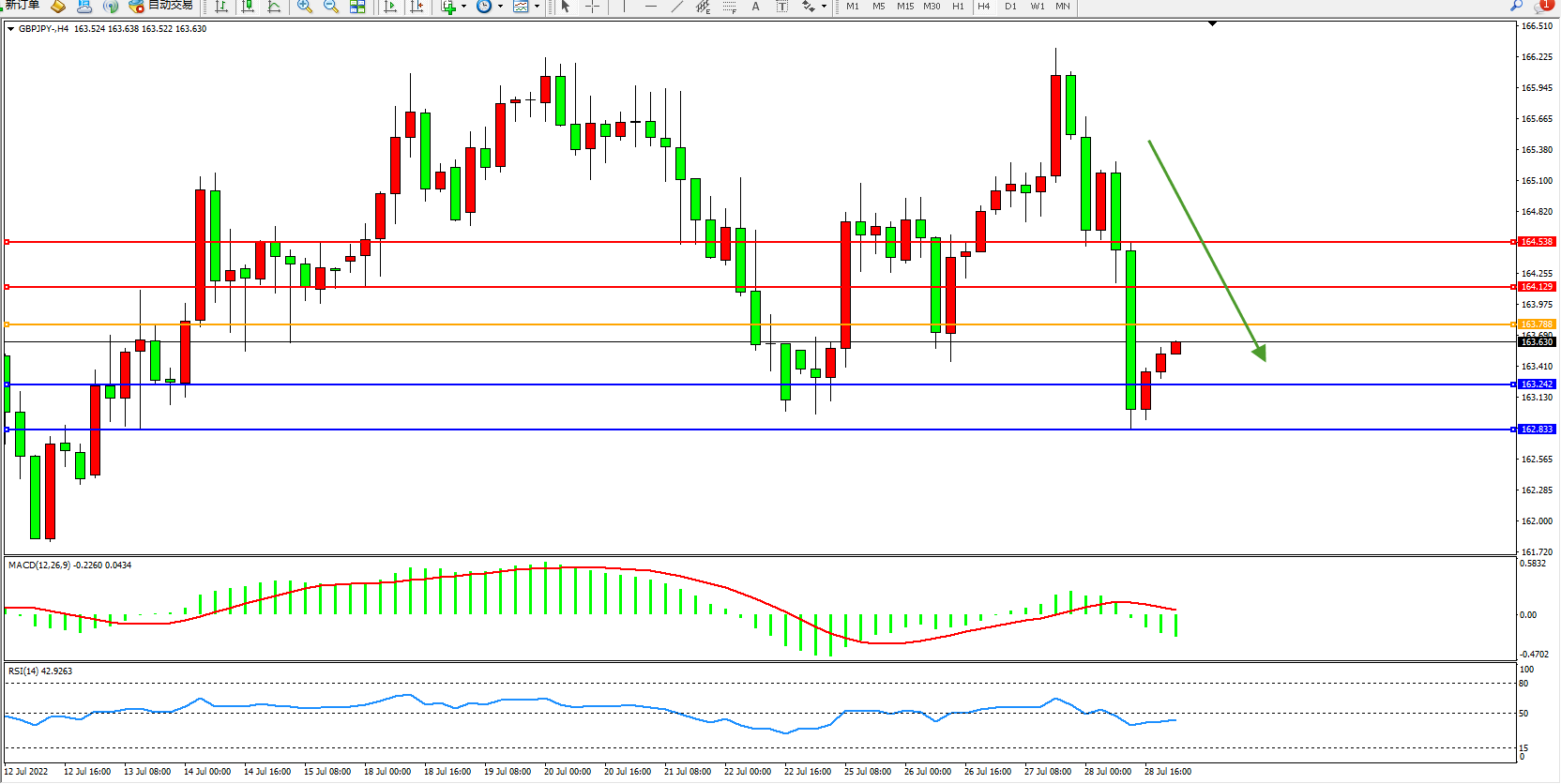 4小时图看:高位空头动力急速下行,短期跌势或将延续,市场整体空头态势良好,MACD指标处于空头区域维持弱势下移,RSI指标处于50均衡线下侧徘徊中;
