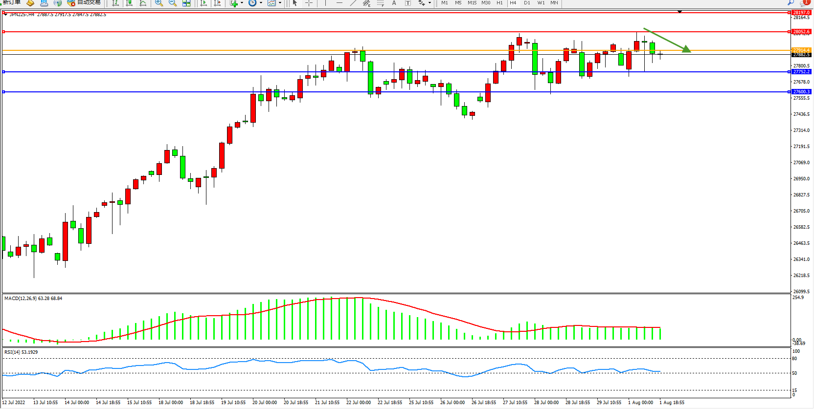 日经225指数8月1日(周一)收盘上涨178.86点,涨幅0.64%,报27980.50点。日本首相岸田文雄已新设创业担当大臣一职,负责扶持创业企业,并任命经济再生担当大臣山际大志郎兼任这一职务。