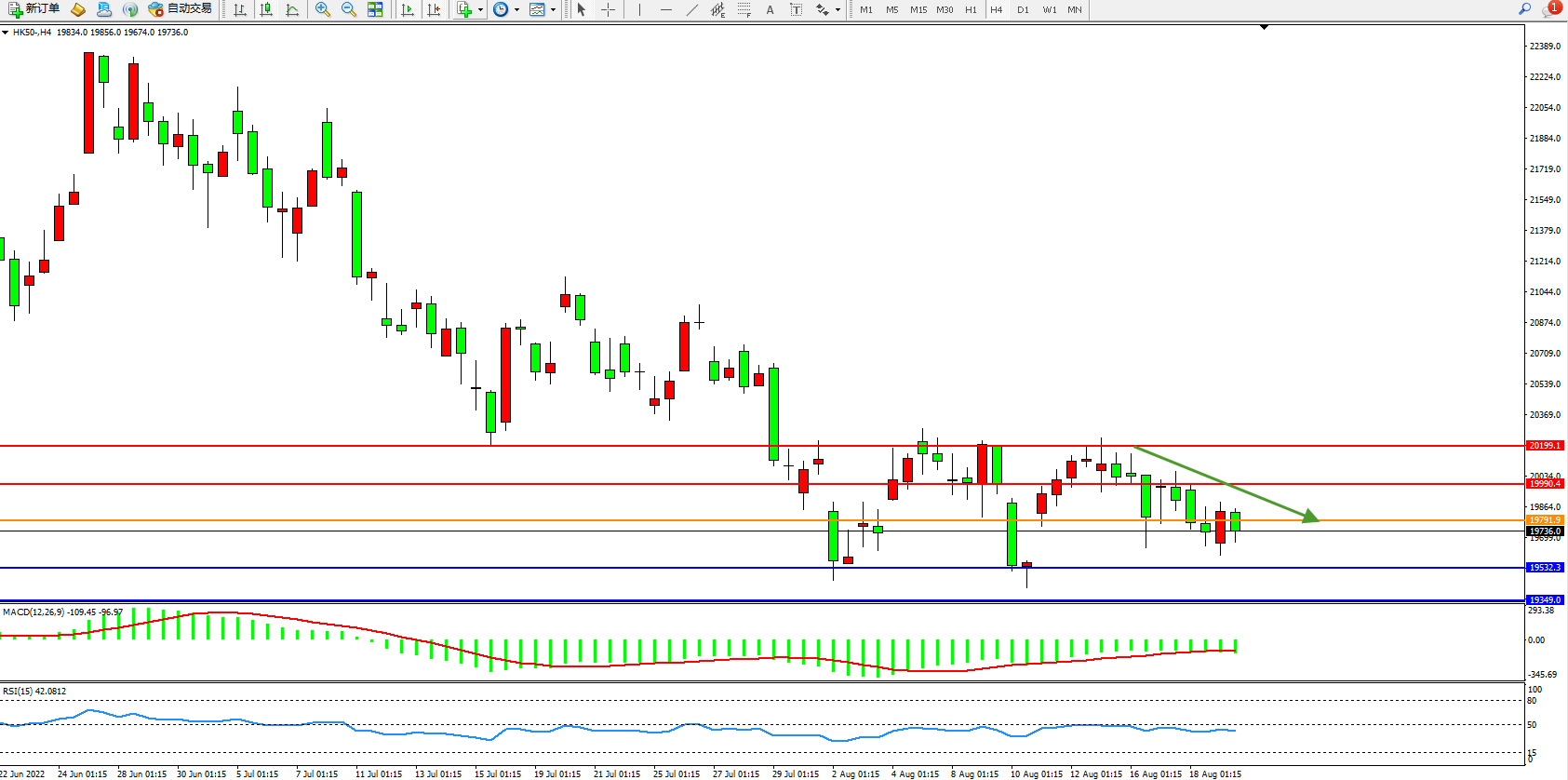 恒指:空头弱势震荡下移 CHINA300  HK50