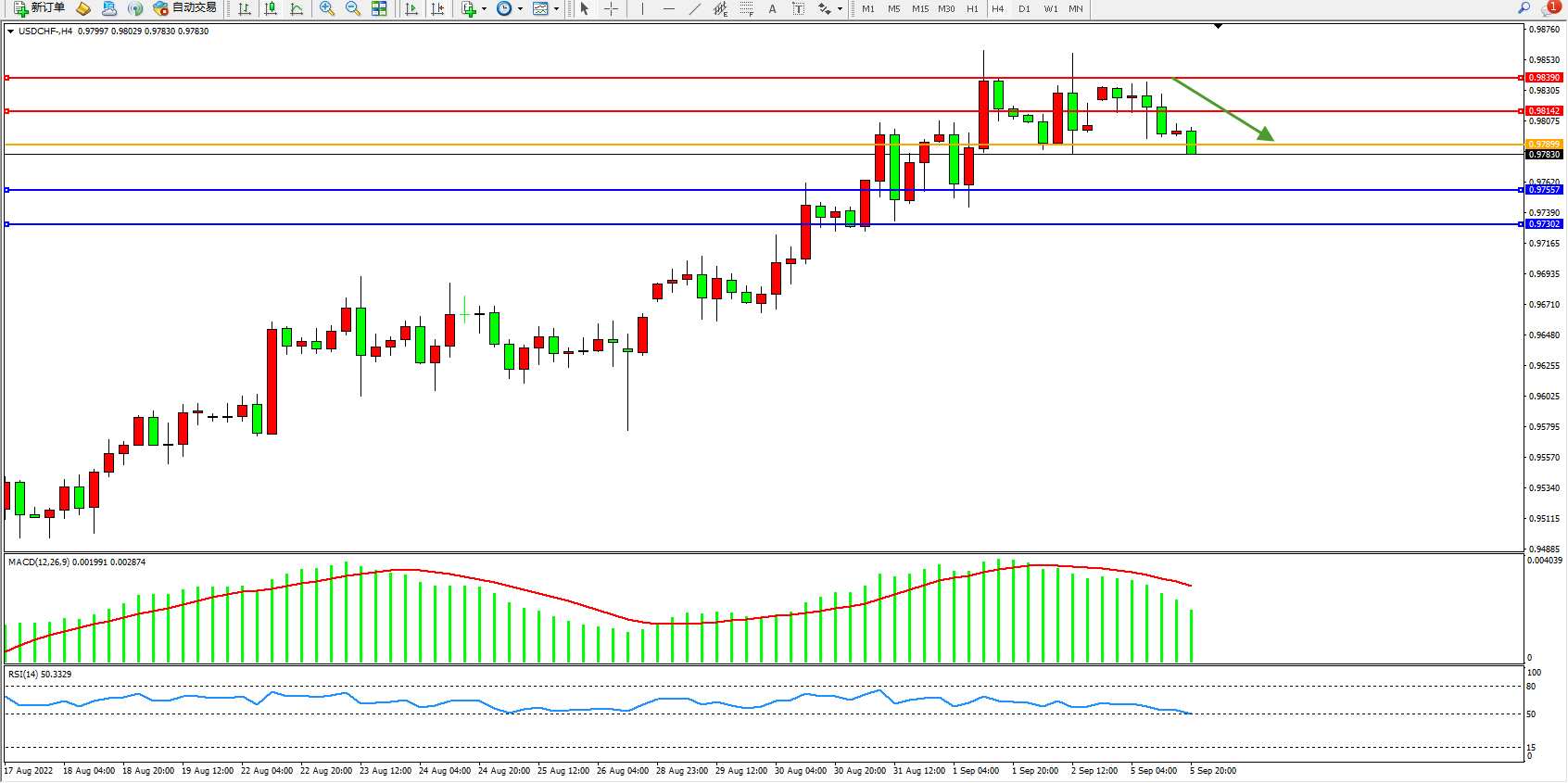 交易策略:0.97899下方看跌,目标0.97557、0.97302