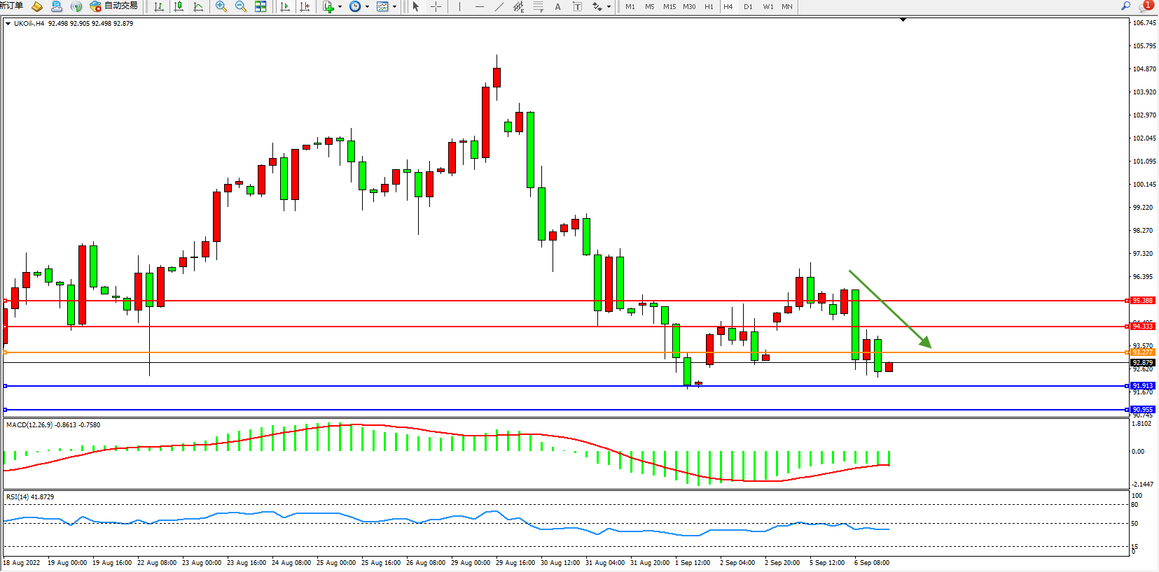 布油维持92.879附近震荡,更多的加息和新冠封控措施将削弱燃料需求的前景重燃市场担忧,扭转了OPEC+自2020年以来首次削减产量目标带来得两天涨势。