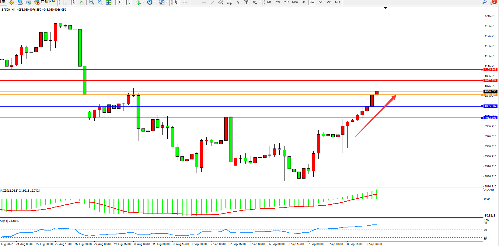 标普500指数9月9日(周五)收盘上涨60.77点,涨幅1.52%,报4066.95点;圣路易斯联储GDP Nowcast模型最新数据显示,预计美国今年第三季度GDP增长将从1.12%下降至0.61%(初始预期为1.5%)。