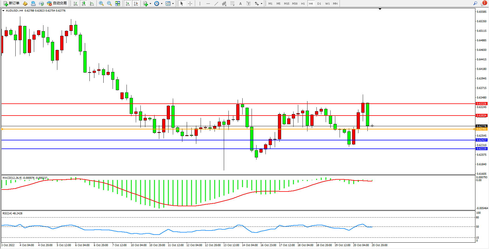 澳元兑美元维持0.62776附近震荡,澳洲联储本月将加息步伐从50个基点缩减到25个基点是合理的,澳元兑美元创三日新低,在资产市场持续低迷、亚洲大国坚持严格防疫政策导致增长预测被下调的情况下,澳元兑美元也很难持续扬升。