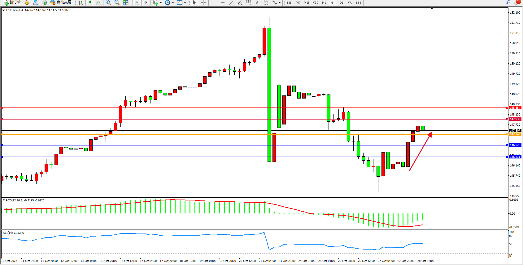 美元兑日圆维持147.507附近震荡,日本央行对于截至2023年3月的本财年核心消费者通胀率预估从7月预测的2.3%上调至2.9%,远高于2%的目标。