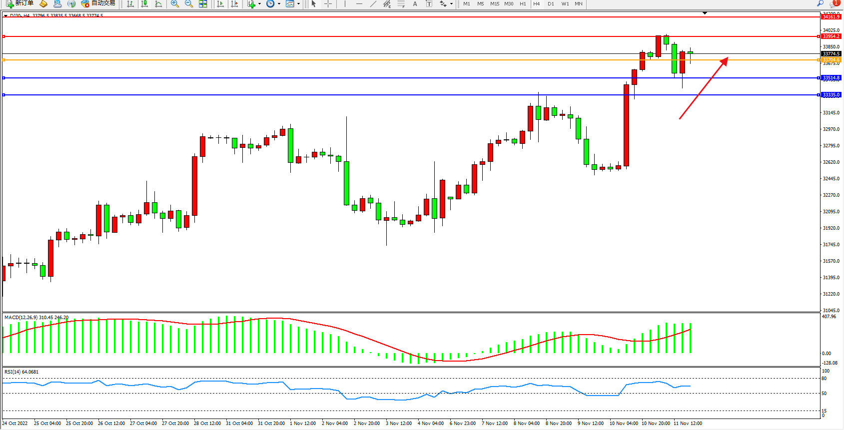 道琼斯指数11月11日(周五)收盘上涨33.81点,涨幅0.10%,报33749.18点;美国财长耶伦:美联储已明确表示将继续加息,未来的货币政策路径取决于美联储。
