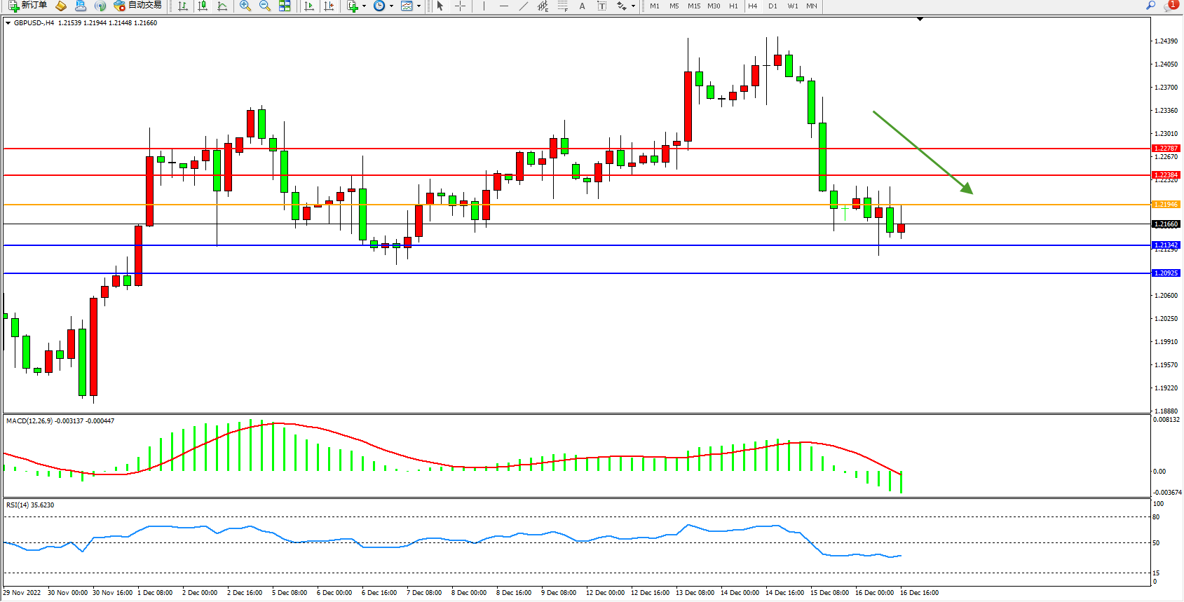 交易策略:1.21946下方看跌,目标1.21342、1.20925