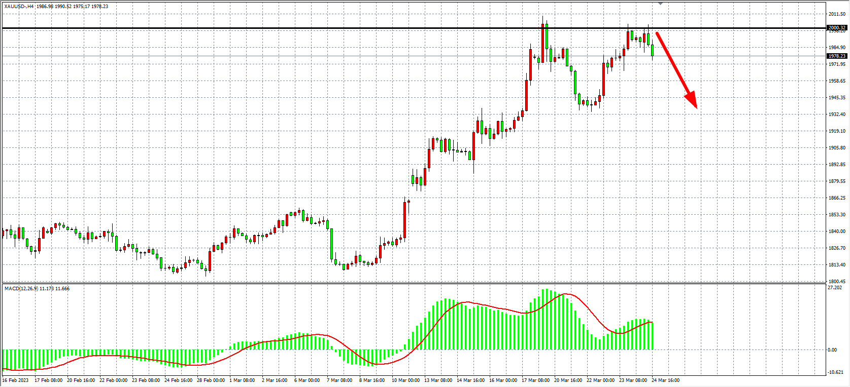 4小时图看,现货黄金在反弹至2000关口附近再度受阻出现回落,短期压力明显,MACD于零轴上仍出现较均匀放量,预示行情有继续走高动能,但需规避短期回调压力,日内以2000美元为多空分水岭,确认上破该位将打开新一轮上行空间,该位之下看回调1960-1940附近。