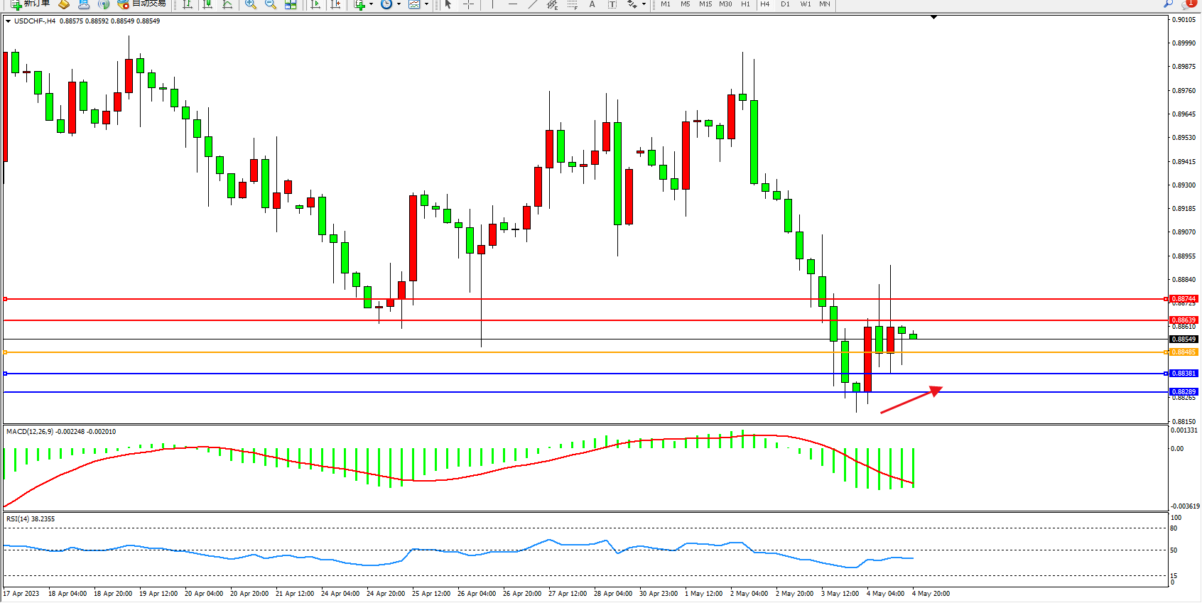 备选策略:0.88485下方看跌,目标0.88381 0.88289