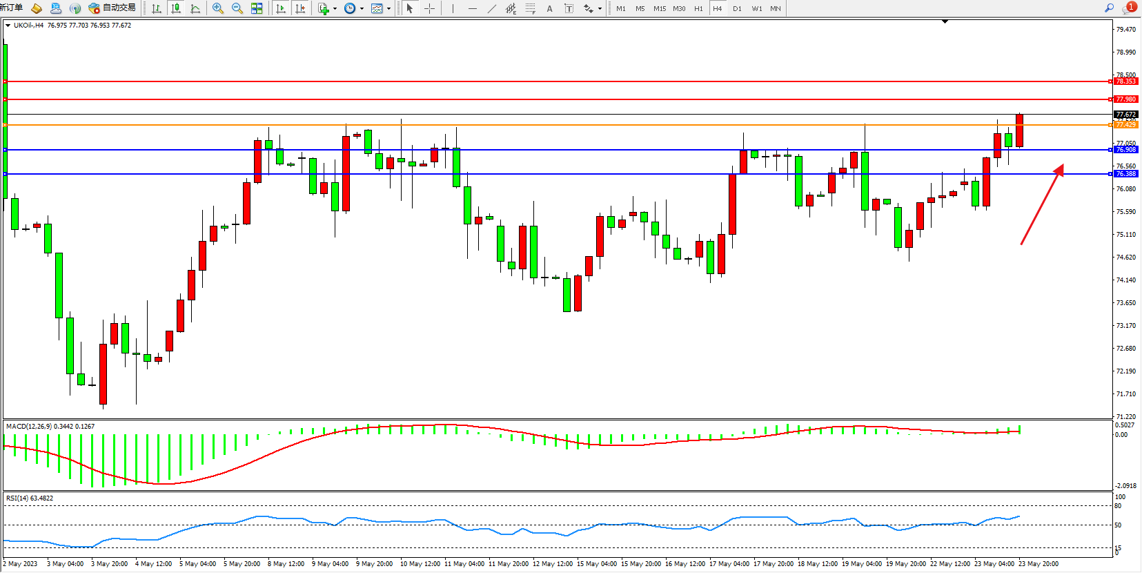 布油维持77.672附近震荡,投资者关注全球最大石油消费国美国的债务上限提升谈判。美国潜在违约可能会引发金融市场混乱和利率飙升,从而影响该国和全球的燃料需求增长。