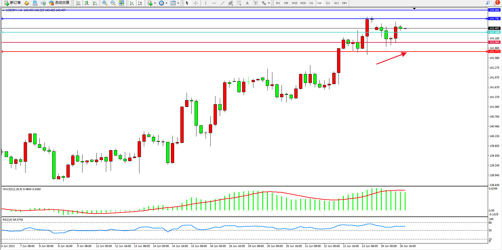 支撑位:143.064 142.773