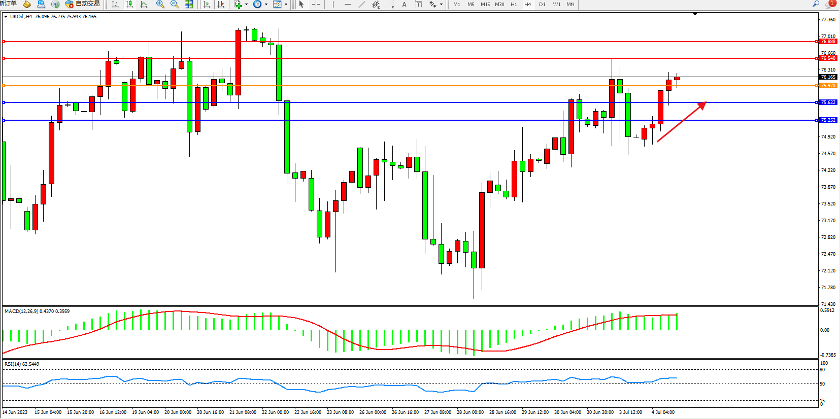 阻力位:76.540 76.888