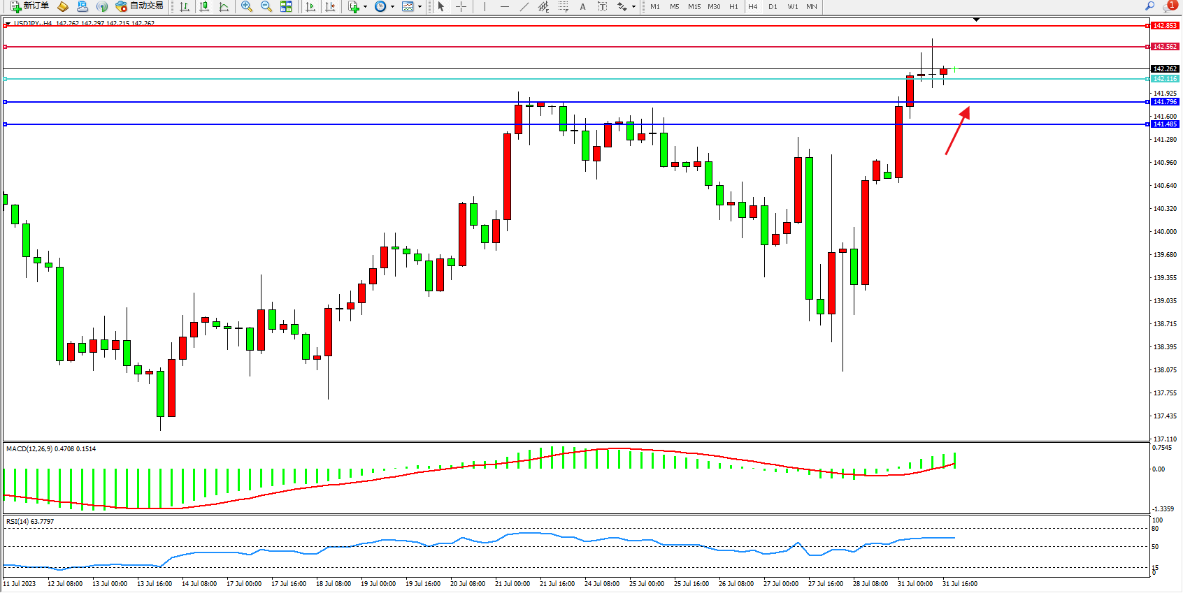 美元兑日圆维持142..262附近震荡,疲软可能最终迫使日本央行改变政策。目前日是唯一受负利率影响的货币。日是最终的融资货币,目前的环境有利于利差交易。