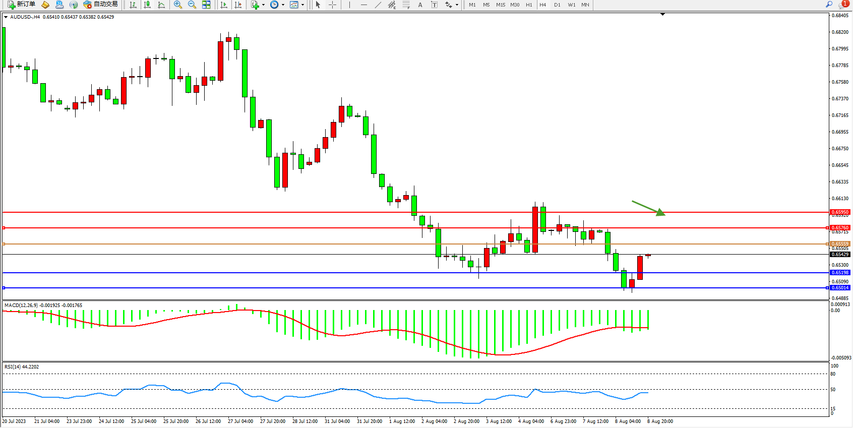 备选策略:0.65559上方看涨,目标0.65760  0.65950