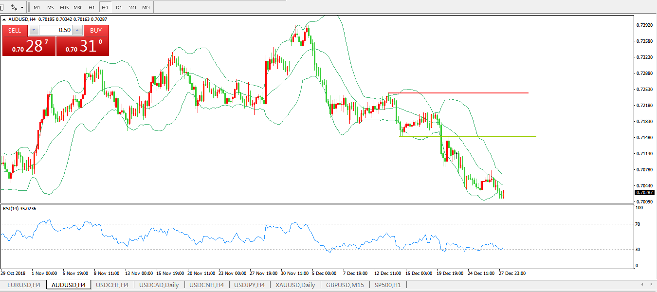 技术面简析:布林带下轨开始拐头RSI触及超卖区域后拐头上行且有一定程度背离现象,预计汇价将有所反弹态势,关注多空分水岭附近压制