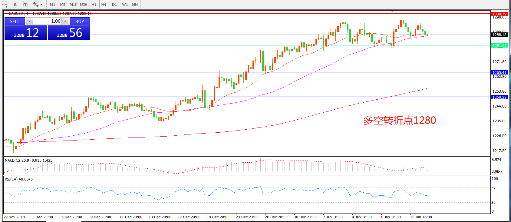 交易策略:在1280.00之上看涨,目标1300.00  1319.00