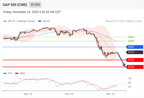 在 6800 之下,看跌,目标价位为 6735 ,然后为 6700 。