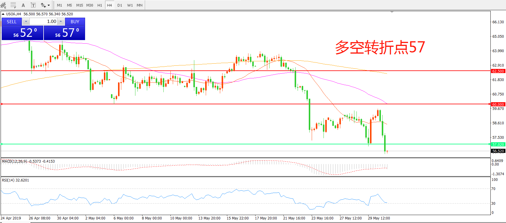 交易策略:在57.00 之下看跌,目标55.00 52.50