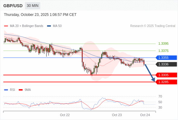 在 1.3355 之下,看跌,目标价位为 1.3305 ,然后为 1.3285 。