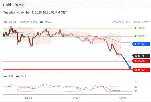 在 3974.00 之下,看跌,目标价位为 3915.00 ,然后为 3886.00 。