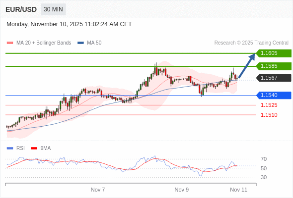 在 1.1530 之上,看涨,目标价位为 1.1585 ,然后为 1.1605 。