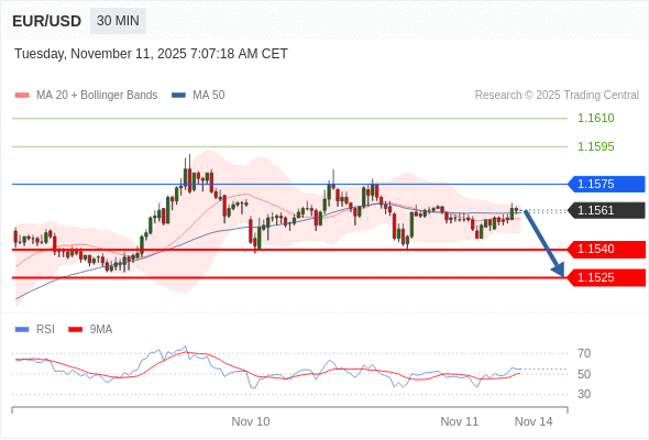 在 1.1575 之下,看跌,目标价位为 1.1540 ,然后为 1.1525 。