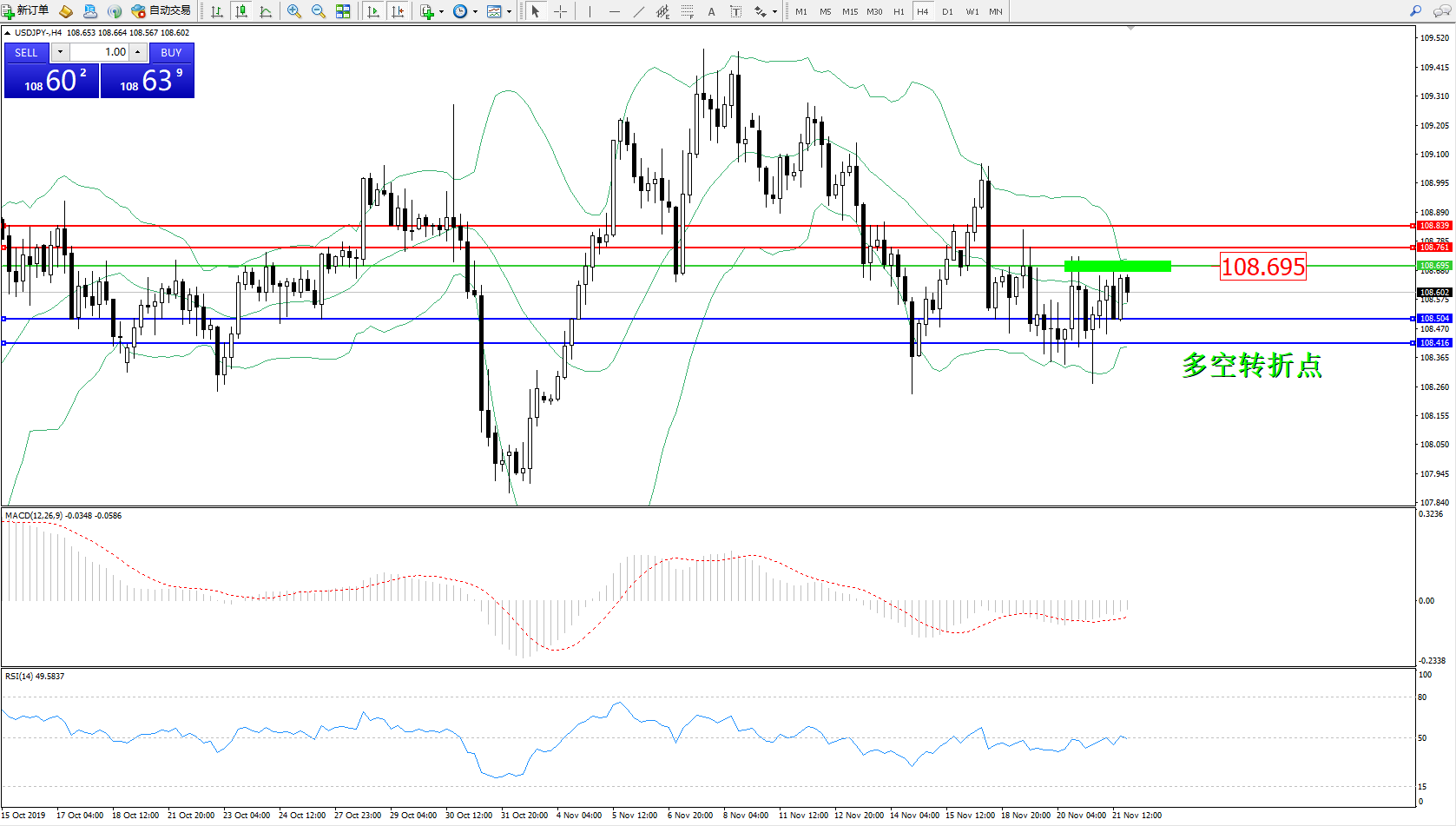 技术点评:空头动力下行后得到短暂支撑,维持低位弱势徘徊走势中,布林带指标呈收口走势中,且有平移态势,MACD指标处于0轴线下方弱势窄幅整理,RSI指标纠结于50均衡线维持持续徘徊中;