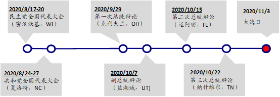特朗普确诊新冠是美国总统竞选过程中出现的超级意外事件,这给后续竞选活动带来了很大的不确定性。本届美国总统大选于上周三进行了第一轮总统辩论,第二场总统辩论将在10月15日举行,11月3日将进行正式大选,由于目前距离大选投票日太近、时间敏感,特朗普总统病症的严重程度和痊愈速度是关键。
