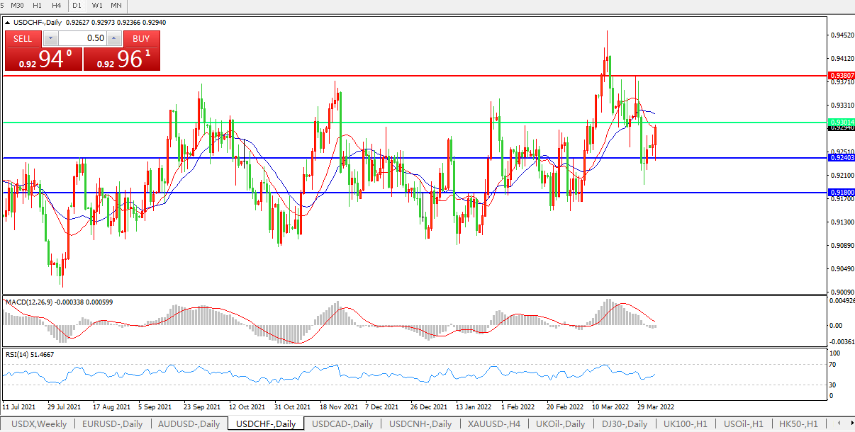 美元兑瑞郎USDCHF 日线图:
