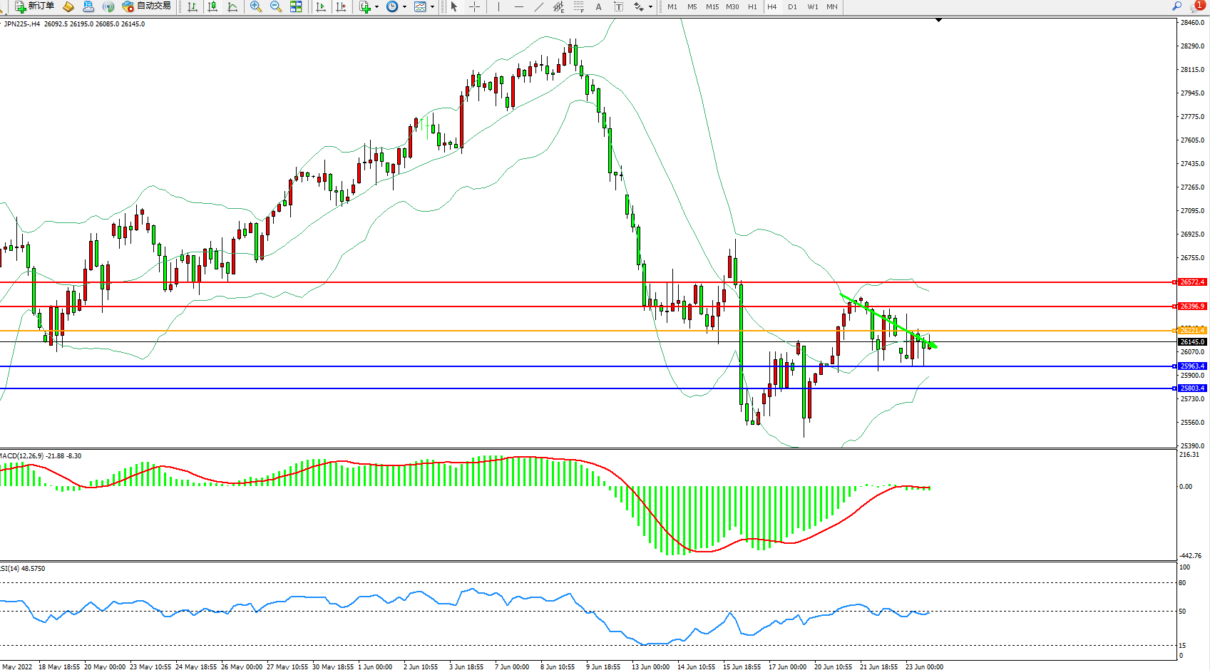 日经225指数6月23日(周四)收盘上涨21.95点,涨幅0.08%,报26171.50点。日本至6月17日当周买进外国债券 -4967亿日元,前值-8672亿日元。