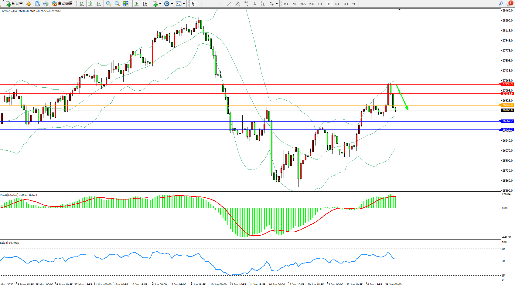 日经225指数6月28日(周二)收盘上涨132.23点,涨幅0.49%,报27003.50点。日本央行6月份购买了价值14.8万亿日元(1100亿美元)的日本国债,超过了2002年11月购买的11.1万亿日元,创下了月度最高总额。