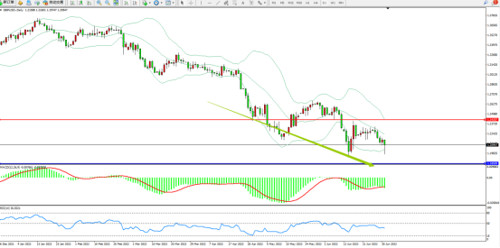 空头动力延续布林带指标通道内呈阶梯式宽幅震荡下行,低位多次触及下轨附近节点后震荡,短期空头动力有继续向下移动态势,布林带指标呈张口走势后开始收口,上方压制关注1.24207附近,低位支撑关注1.18509附近,MACD指标处于0轴线下方空头区域整理平移,RSI指标处于50均衡线下侧弱势徘徊,如图: