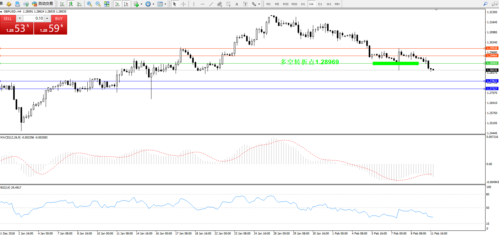 交易策略:1.28969下方看跌,目标1.278221.27327