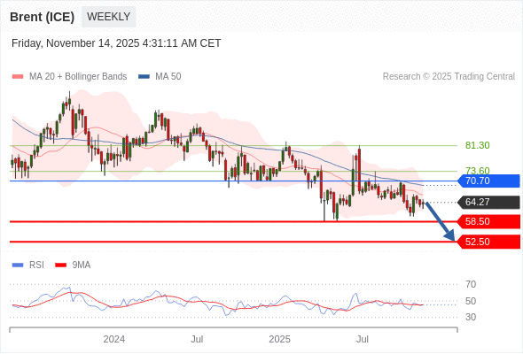 交易策略: 在 70.70 之下,看跌,目标价位为 58.50 ,然后为 52.50 。